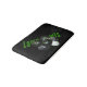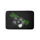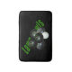 Vorgestellt sind schwarze Rasenschüsseln mit einem grünen Lawn Bowls Logo, das oben umgedreht ist.
