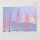 Digitales Bild von schneebedeckten Birkenbäumen; der Schnee gefärbt von der untergehenden Sonne. Hier im Norden ist es üblich, schneebedeckte Bäume zu sehen, die von der Sonne am Horizont tief in Rosa oder Orange eingefärbt sind.