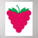 Do you like fruit theme art? This poster has a graphic of a pink raspberry with a green stem.