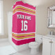 Raspberry Gold White Stripes Sports Jersey Duschvorhang