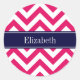 Raspberry Lg Zickzack Navy Name Monogram Runder Aufkleber
