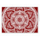 Dieses weiße Mandala sitzt auf einem dunkelroten Hintergrund. Die Farbe ist tief und warm. Teil der Sammlung Bardh Mandala.