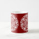 Dieses weiße Mandala sitzt auf einem dunkelroten Hintergrund. Die Farbe ist tief und warm. Teil der Kylgh Mandala Kollektion.