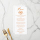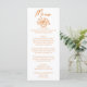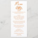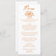 A colorful retro funky modern orange floral bouquet wedding dinner menu. Which features chic template design of boho vintage white background on the front and back. With orange whimsical typography. Perfect and matching with the whole suite.