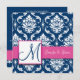 Raspberry Pink Navy Blue Damask Einladung
