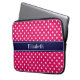 Raspberry White Polka Dots Navy Blue Name Monogram Laptopschutzhülle