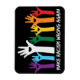 Farbenfrohe Anti-Rassismus-Gestaltung mit einem "Regenbogen" von Händen mit Herzklopfen und weißem Text, der den Rassismus wieder falsch macht.