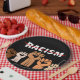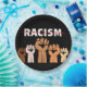 Das Design der sozialen Gerechtigkeit zeichnet sich durch einen RACISM-Text mit mehreren Schatten, erhöhte Fäuste des Protests.