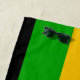 Bold Rasta flag coloured green, yellow and red striped beach towel. It features a monogram square in the middle where you can add your own initial