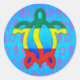 Die Kombination von Elementen zweier unterschiedlicher Inselkulturen, der Hawaiianischen und der Rastafari Bewegung, um ein einzigartiges Symbol zu schaffen, eine Rastafari Honu Schildkröte mit einem türkisblauen Einlegefarben. Ozeanblauer Hintergrund mit rosa Hawaiianischen Honu Meeresschildkröten und Ki-Maske.