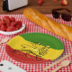 Rasta Löwe von Judah Papierplatte in rotem Gold und Grün.