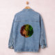 Rasta schwarze Frau in rot-gelb-grün Jeansjacke