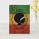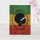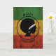 Dieses Design zeigt die Silhouette einer Afrikanerin in einem goldenen Kreis mit "Peace & Liebe" auf ihrem Kopfband auf einem gebeutelten Rasta-Fahnen-Hintergrund mit "Frohe Weihnachten" in schwarzem Schriftart.