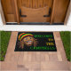 Farbiger Willkommensfußabtreter mit einem lächelnden Rastafari-Mann. Der anpassbare Text lautet WELCOME TO THE (FAMILIENNAME), aber Sie könnten ihn in einen anderen Slogan oder ein lustiges Zitat usw. ändern