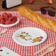 Ein Hahn und einige Hennen versammelten sich. Dieses Design wirkt auf diese Paper-Teller sehr effektiv