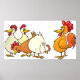 Ein Hahn und einige Hennen versammelten sich. Dieses Design sieht wirklich effektiv aus auf diesem Poster