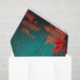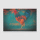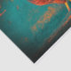 Gewebepapier mit dem Bild eines bunten Hahns vor einem blauen Backstein Hintergrund.