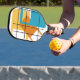 Dieses Pickleball-Paddel hat ein modernes Design von drei Rechtecken, orange, grün und türkis, mit jeweils einem weißen Rechteck. Wenn Ihnen das Design gefällt, aber andere Farben bevorzugen, dann schreiben Sie mir.