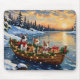Bring energetic, plucky charm to your holiday season with this adorable Rat Terrier Christmas design! This magical scene features three cute, alert Rat Terriers sitting attentively in a cozy wooden boat, gently floating on a serene snowy lake at sunset. The boat is beautifully adorned with glowing Christmas string lights and fragrant pine garlands, while the dogs wear festive scarves. They are surrounded by colorful wrapped presents and cheerful holly branches. Soft snowflakes gently fall, and the shimmering reflection of the lights on the water creates a truly magical winter holiday atmosphere. This design is a perfect Christmas gift for any Rat Terrier owner, dog lover, or admirer of festive and unique American dog art, capturing the serene joy of the season.