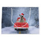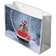 Rat Terrier Hund im Schnee sitzend im Weihnachtswa Große Geschenktüte