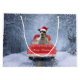 Ein Weihnachtswagen, der durch den Schnee fährt und Weihnachtsgeschenke und Rat Terrier Hund liefert. Eine perfekte Weihnachtsgeschenkidee für jemanden, der diesen Hund züchtet.