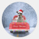 Rat Terrier Hund im Schnee sitzend im Weihnachtswa Runder Aufkleber