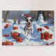 Rat Terrier läuft im Schnee mit Weihnachtshut Puzzle