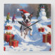 Rat Terrier läuft im Schnee mit Weihnachtshut Quadratische Wanduhr
