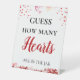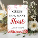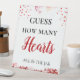 Machen Sie Ihr Valentiner Brautparty, Ihre Babydusche oder Ihre Geburtstagsfeier unvergesslich mit diesem charmanten Spielschild "Guess How Many herts Are in the Jar"! Dieses bedruckbare Schild ist perfekt geeignet, um eine Touch von Spaß und Aufregung zu schaffen. Mit eleganten Schriftart, Herzakzenten und sanften Rot- und Rottönen ergänzt es jede Liebe.