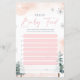 Raten Sie Baby Food Game Karten Winter Baby Dusche Spiele Thema mit Kiefern und Schneeflocken. Sie können diese Spielkarten einfach personalisieren und mehr oder weniger erraten.