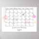 Mit niedlichen Baby-Rosa-Wolken und goldenen Sternen auf Streichern rät diese schicke Babydusche, dass das Terminplaner mit Ihrer speziellen Nachricht und Ihrem Babynamen personalisiert sein kann. Verwenden Sie das Anpassungstool, um die Textfelder des Monats und den Stern zum "Fälligkeitsdatum" zu verschieben. Entwickelt von Thisisnotme©