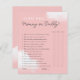 Feiern Sie die Babydusche mit dem interaktiven Spiel "Mommy or Daddy Guess Who", das fröhliche Erinnerungen und Spannung unter den Gästen schafft. 14 spannende Fragen, bei denen Gäste erraten, wer jede Aussage beschreibt, die Mutter oder Vater. Das hellrosa Himmelswolke 9 Design schafft ein minimalistisches und charmantes Ambiente für einen Tag voller Liebe, Freude und gepflegter Momente. Verwenden Sie die Entwurfstools, um den Text und die Schriftart anzupassen.