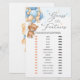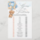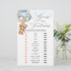 Dieses Design verfügt über einen freundlichen Teddy Bär mit blauen und cremefarbenen Ballons. Text "Guess the Features" ist in modernem Kalligraphie-Schriftart geschrieben.