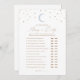 Lassen Sie sich von den Baby Duschgästen in einem Spiel von "Guess Who: Mommy oder Daddy mit dieser eleganten Spielkarte, mit goldener Typografie und einem blauen Monddesign teilnehmen.