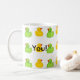 Ratet mal, wer wird ein Papa sein? Kaffee-Tasse mit niedlichen, kleinen, gelben und grünen Latex-Enten.