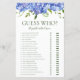 Dieses hübsche, blaue Hydrangeas Guess Who - Brautparty-Spielblatt ist elegant und charmant - perfekt für jede Gartenhochzeit, botanisch, rustikal, romantisch, floral, formell oder alt. Seine exquisite Kombination aus anmutigen, mehrfarbigen, blauen Hydrangeas und Weisheit Grün ist geflogen, zart und schön. Dieses lustige und leichte Spiel bringt jede Menge Lachen in jedes Brautparty! Sie werden erstaunt sein, wie viele Antworten die Leute wissen werden. In Sekunden können Sie sehen, wie Ihr Spielblatt aussehen wird. Wählen Sie einfach diese Vorlage personalisieren und geben Sie die Namen der Braut und des Bräutigams ein.