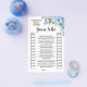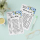 Blue Flowers Raten Sie, wer englische und spanische Version Spiele enthalten (vor und zurück). Ändern Sie den Wortlaut in das Design für die englische und spanische Version. Für weitere Anpassungen (andere Formulierungen, Schriftart, Schriftart), klicken Sie auf Personalisieren, scrollen Sie nach unten und klicken Sie auf den Link "Klicken Sie, um weitere Anpassungen vorzunehmen". WIE MAN SPIELT: Die Gäste raten, ob die Braut oder der Bräutigam sagte, die Phrasen, die ihre Antwort auf der verlassen Seite für die Braut oder das Recht für den Bräutigam überprüfen. Die Person mit den besten Antworten gewinnt.