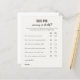 Fügen Sie Ihrer Babydusche eine Touch Abenteuer mit unserem "Guess Who: Mommy or Daddy" Spiel hinzu! Dieses Spiel macht so viel Spaß wie es liebenswert ist. Die Gäste werden gerne leichtere Fragen beantworten, um zu erraten, wer - Mama oder Papa - am besten zu den Hinweisen passt. Am unteren Ende des Raumes können die Gäste herzliche Ratschläge verlassen und ihre Namen unterschreiben, um so einen Sake voller Lachen und Liebe zu schaffen. Perfekt für das digitale Teilen oder Ausdrucken, dieses Spiel ist eine reizvolle Ergänzung zu Ihrer Feier!