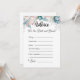 Die Einführung von "Advice For the Bride and Groom", einem herzlichen und sinnvollen Brautparty-Spiel, das über bloße Unterhaltung hinausgeht. Dieses Spiel bietet eine sichere und konfrontationsfreie Plattform für Familie, Freunde und Angehörige, die ihren guten Willen und ihre Weisheit dem bald zu erwartenden Paar anbieten können. Es ist eine wunderbare Gelegenheit für Gäste, ihre herzliche Beratung und Unterstützung in einer durchdachten Art und Weise zu teilen. Die Karten sind elegant mit den Worten "Ratschläge für Braut und Bräutigam" in einem hübschen Schriftart mit schwarzer Schrift gestaltet und setzen den Ton für einen aufrichtigen und echten Stimmungsaustausch. Im Hintergrund findet man eine wunderschöne Auswahl an Blume und Blätter, die die Spitze schmücken, und die das Wachstum und die blühende Liebe des Paares symbolisieren. Jede Karte enthält die entsprechenden Felder, die die Gäste unter den Rubriken "Immer", "Manchmal", "Nie", "Vergiss nicht" und "Ich wünsche euch beiden" ausfüllen können. Dieses strukturierte Format sorgt dafür, dass die Gäste ihre Gedanken und Wünsche in einer durchdachten und organisierten Art und Weise zum Ausdruck bringen können, und schafft so einen gepflegten Sake für das Paar. Ob Sie die Karten professionell bedrucken lassen möchten oder einen DIY-Ansatz bevorzugen, "Advice For the Bride and Groom" ist eine spannende Ergänzung zu jedem Brautparty, Polterabend oder Hochzeitsfest. Das Paar kann diese Karten als ein schönes Memento ihres besonderen Tages sammeln und dabei die herzlichen Worte und die liebevolle Anleitung schätzen, die von seinen nächsten und lieben geteilt wird. Im Laufe der Jahre werden diese Karten noch wertvoller und dienen als greifbare Erinnerung der Liebe und Unterstützung, die das Ehepaar umgab, als es seine Ehereise begann. "Beratung für Braut und Bräutigam" ist mehr als nur ein Spiel; es verwandelt sich in einen tief greifenden und dauerhaften Sake, der das Wesen der Liebe und Ermutigung für das Ehepaar verkörpert, sowohl jetzt als auch in den kommenden Jahren.