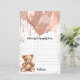 Für eine Babydusche. Ein stilvoller weißer Hintergrund. Dekoriert mit Rose Gold, Tropfen, Malertränke, Party-Raster, Ballons und einem niedlichen Teddybär.