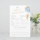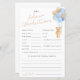 Feiern Sie die Mama-to-be mit dieser niedlichen und schlichten, modernen Babydusche "Advice + Predictions" Babyduschkarte mit einer Aquarellfarbe, die von einem niedlichen Teddybär mit Bräunen, Blau und Grauballons zeichne.
