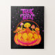 Es ist das Halloween-Party-Design, das das kommende Halloween feiert. Diese handgezeichnet Kawaii- und lustige Illustration zeigt Happy Halloween, Kürbispilze und Trick oder Leckerbissen.