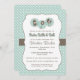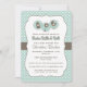 Niedliches SHAKE RATTLE & ROLL Babydusche Design mit Babyflasche, Rind- und Babywagen und kleinen Herzen. Blau-weißer Polka-Punkt-Hintergrund Personalisieren Sie es mit Ihrem eigenen Text. PinkInkArt Original!