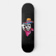 farbenfrohe Gestaltung eines rauchenden Skeletts oder Schädels mit einem farbenfrohen Sombrero und einem roten Schal auf einem Skateboard.