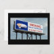 Anti-Raucher-Postkarte - mit einem Plakatschild mit dem Aufdruck "Rauchen macht die Bevölkerung aus, bleiben oder gehen Sie?"