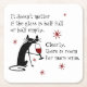 Es spielt keine Rolle, ob das Glas halb voll oder halb leer ist. Natürlich gibt es auch noch Platz für mehr Wein. Hier ist eine angesagte Retrokatze (die Cabernet Cat), die seine charakteristische Sonnenbrille trägt, sein Glas Rotwein hält und dieses alberne Argument ein für alle Mal beilegt. Der Text ist in einem niedlichen Vintagen Schriftart, und überall sind bordeauxrote Sterne. Das C.C. und das lustige Zitat sind alle auf einem Set von Papier-Untersetzer.