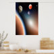 Ein Poster mit vielen bunten Gasplaneten im All. Das ist eine künstlerische KI.