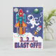 Astronaut Rocket Ship Outer Space Shuttle aus dieser Welt Geburtstagsparty Einladungen. Personalisieren Sie diese Einladungen mit Ihren eigenen Veranstaltungsdetails.