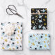 Astronaut Thema Cartoon im Raum mit wiederholten Bildern von Astronauten, Monden, Planeten mit Ringen, Satelliten, Sauerstoffkanister, Sterne, Blitzschrauben, Asteroiden und Raketen. Set auf weiß, schwarz und blass.