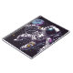 Astronautenmond geht im Raum in farbenfrohen Design. Ideal für Kinder und Erwachsene.